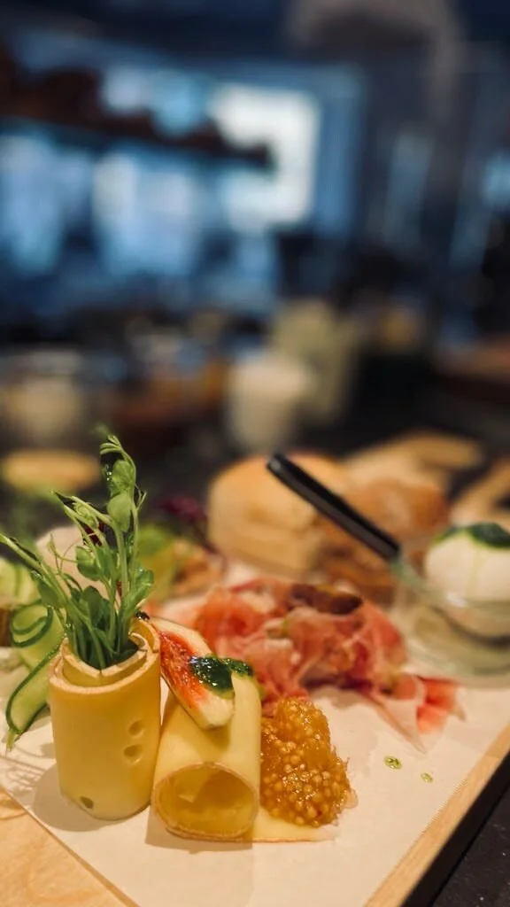 3 Aufstriche des Tages, fermentierte und eingelegte Gemüse, Joghurtbutter, Rahmkäse aus dem Bregenzerwald, Parmaschinken oder Südtiroler Speck oder Bresaola, Wiggerl‘s Kräuterei gleich zwei davon, 2 Marmeladen aus dem Vinschgau, 2 Croissants, 2 Semmeln, Bergbauern Joghurt mit unserem selbst gerösteten Müsli.