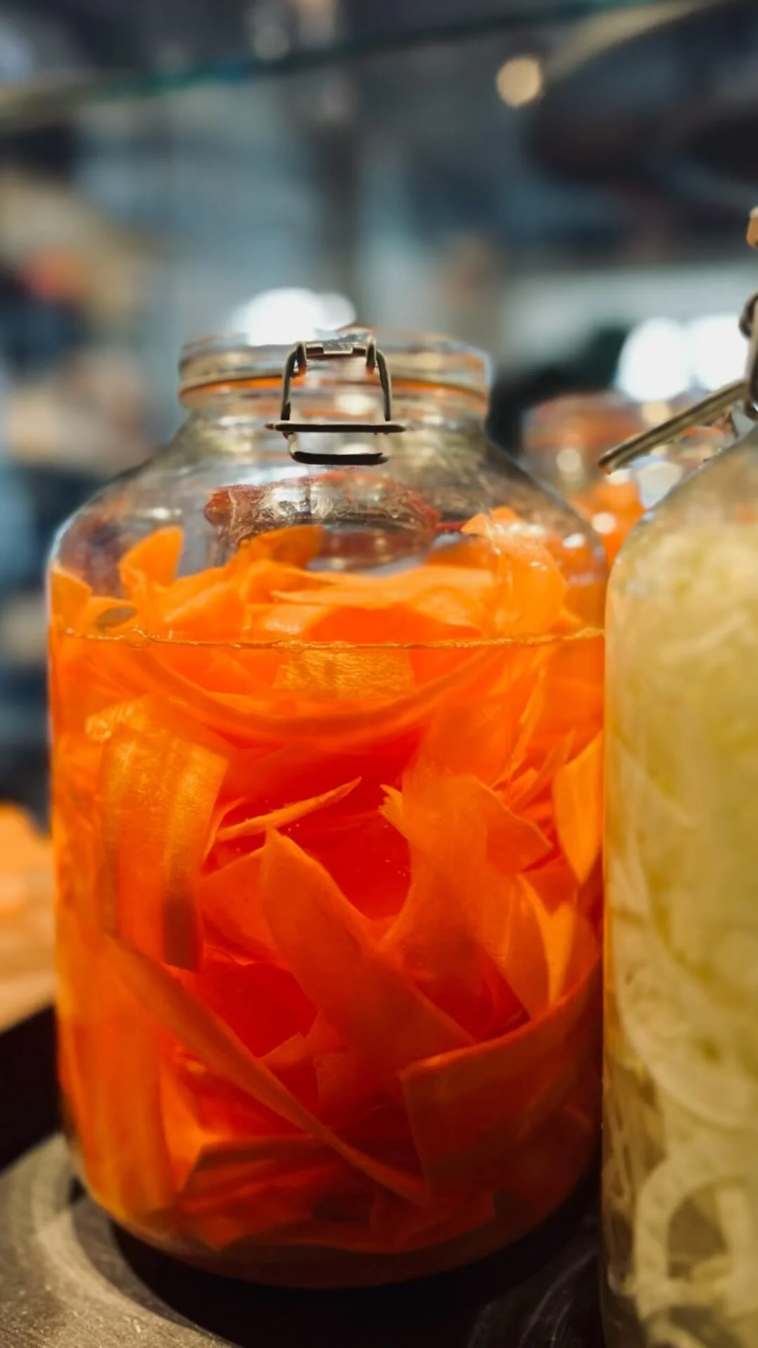 3 Aufstriche des Tages, fermentierte und eingelegte Gemüse, Joghurtbutter, Bauernkäse, Parmaschinken oder Südtiroler Speck oder Bresaola, Wiggerl‘s Kräuterei, 1 Semmel.